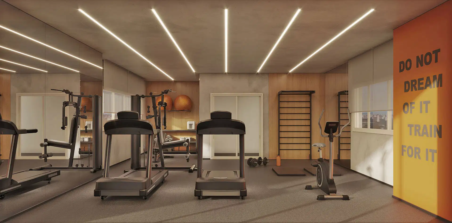 Piscina com solarium, fitness indoor, fitness outdoor, espaço gourmet e lounge gourmet